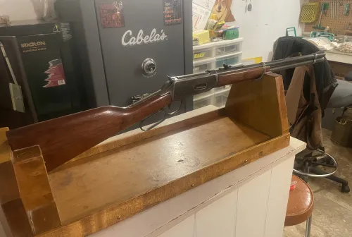 850.00 WINCHESTER MOD 94 Dec 13, 2025 - 6:46 PM alvin7mm to sell as stated has 20 inch barrel open sights bluing turning into light patina no cracks in st