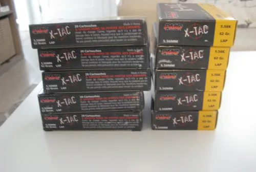10.00 .556 PMC XTAC 62 GR. 10 BOXES Mar 9, 2026 - 11:23 AM bluesman DISPONIBLE POUR RAMASSAGE A QUEBEC ET ENVIRONS OU AU CLUB DE TIR BEAUSÉJOUR RIVE SUD DE QUÉBEC.