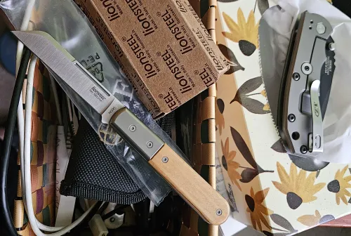 130.00 Lionsteel Dom Barlow Folding Knife, Olive Wood slipjoint Apr 19, 2026 - 3:31 PM Calgaryshot Brand new in box. Very nice 3" blade slipjoint in premium m390 supersteel.