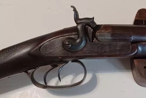 SOLD 575.00 Belgium SXS Coach Gun Circa 1840. Sep 19, 2025 - 7:21 AM Retired man now Belgium SXS Coach Gun Circa 1840.