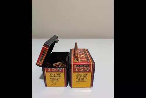 100.00 Barnes 308 cal 165gr TSX Oct 14, 2025 - 4:36 AM Peecos 1 full unopened box and one box of 25 bullets.