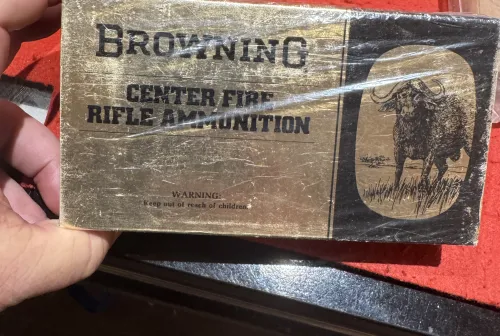 200.00 458 Winchester Mar 14, 2026 - 1:19 PM DSlaght Browning box of 458 win , 500gr , from the sixties