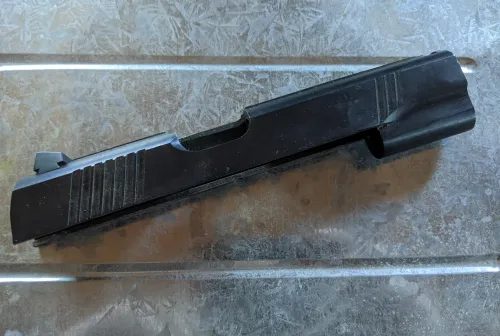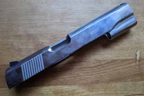 200.00 Nearly new 1911 Norinco slide almost complete in .45 ACP Apr 24, 2026 - 4:23 PM JBrunt .45 ACP. Almost complete with extractor and firing pin. Only missing front sight.