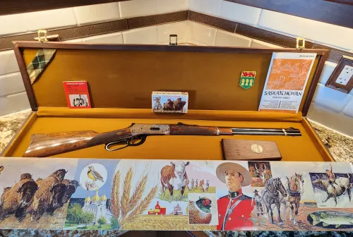 5000.00 Winchester saskatchewan diamond jubilee deluxe Mar 14, 2026 - 5:19 PM luckylimited Winchester Saskatchewan Diamond Jubilee Deluxe commemorative. Never fired.