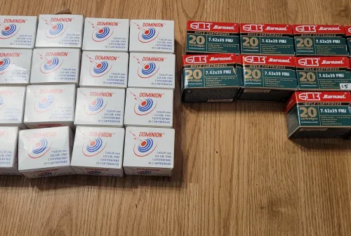 400.00 7.62x39 non corrosive Jan 18, 2026 - 6:40 PM beretta92 Selling 500 rounds 7.62x39 dominion and barnaul together as a lot asking 400$ will not Ship local