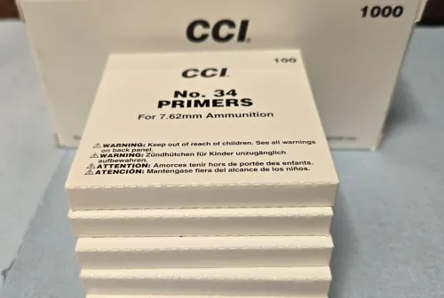 250.00 CCI 34 Large Rifle Primers (1,600 Primers) Feb 7, 2026 - 9:50 AM James Brown Calgary and area (Airdrie to High River, Cochrane to Strathmore) only.