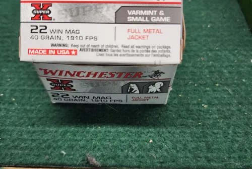 100.00 22 WMR Ammo For Sale Several lots Mar 1, 2026 - 6:07 AM GLSG 5 boxes of 22 WMR Mag - Winchester Super X 40gr FMJ ammo .$100 for