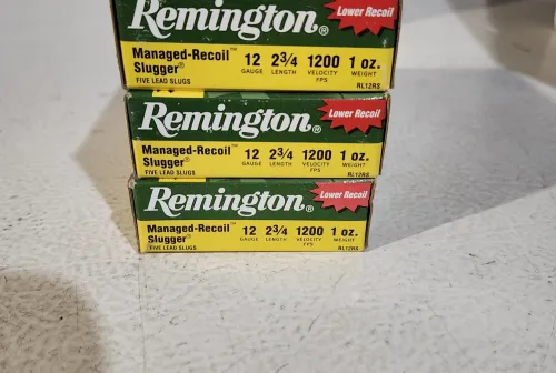 30.00 Remington Managed Recoil 12 ga Slugs Feb 20, 2026 - 1:48 PM GLSG For Sale Remington Managed Recoil Rifled Slugs 12ga 2 3/4"