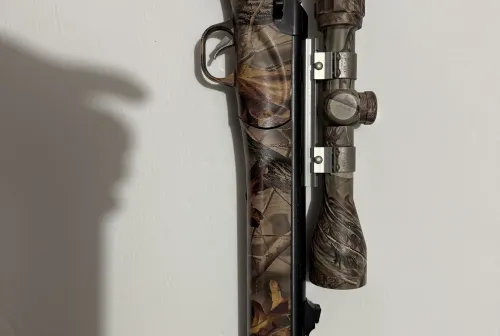 450.00 Thompson centre impact muzzle loader Feb 21, 2026 - 2:24 PM Daveisme Thompson centre impact 50cal muzzle loader blued with camo stock and camo Bushnell banner 3-9x32