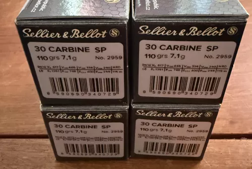 33.00 Sellier and Bellot 30 Carbine 110 Gr SP (soft point) box of 50 Hunting Ammo Sep 8, 2025 - 2:03 PM Steventc No longer needed, I payed $50 plus tax a box4 boxes available