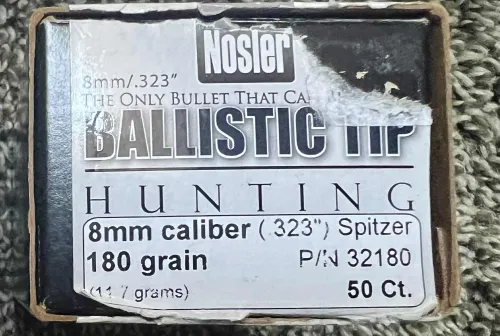 12345.00 30 cal bullets + 1 box of 8mm Dec 7, 2025 - 2:29 PM 5150 Nosler Ballistic tip 180gr 8mm (323) Spitzer 50ct 68$