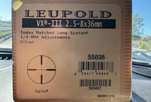 750.00 Leupold silver Sep 20, 2025 - 2:27 PM bturmel Leupold vx-iii SILVER 2.5x8x36 Like new. Price firm + shipping.