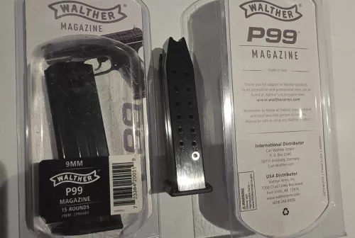 88.00 Walther OEM P99 9mm 10/15 Mags Oct 16, 2025 - 1:14 AM Ammunation Walther OEM P99 9mm 10/15 Mags Made in Italy. $88 each.