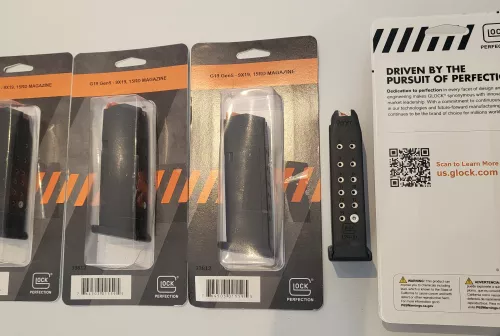 48.00 Glock OEM G19 10/15 Mags Gen 5 Black Oct 20, 2025 - 5:01 AM Ammunation Glock OEM G19 10/15 Mags Gen 5 Black $48 each. Fits all gens of Glock 19, etc.