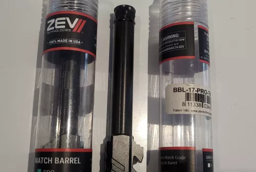 388.00 Zev Technologies Glock 17 9mm Gens 1-4 Pro Threaded Match Barrel Oct 12, 2025 - 9:18 AM Ammunation Zev Technologies Glock 17 9mm Gens 1-4 Pro Threaded Match Barrel with thread cap