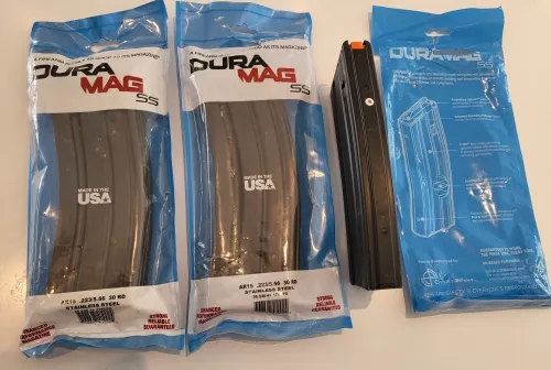45.00 Duramag 5.56 5/30 Mags Stainless Steel - Black Oct 14, 2025 - 10:20 AM Ammunation Duramag 5.56 5/30 Mags Stainless Steel - Black $45 each. STANAG compatible.