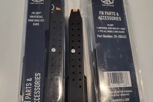 88.00 FN 509C 9mm 10/12 Mags OEM Oct 19, 2025 - 9:19 AM Ammunation FN 509C 9mm 10/12 Mags OEM Pinned as per Canadian law. $88 each.