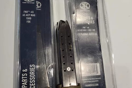 58.00 FN FNX OEM .45 10/10 Mags - Used Oct 19, 2025 - 9:27 AM Ammunation FN FNX OEM .45 10/10 Mags - Used very lightly.