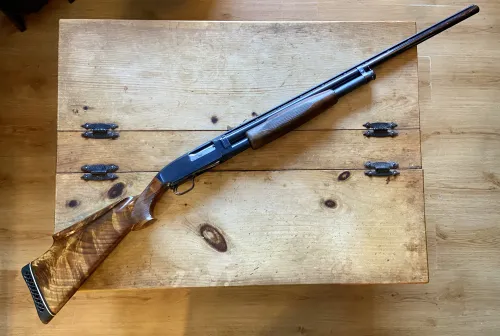 1500.00 Winchester model 12 Trap custom stock (long LOP) 12 gauge pump action shotgun Mar 6, 2026 - 5:10 AM GunSlinger.44 Winchester model 12 Trap. 12 gauge, 2.75”, barrel is 30”. LOP 15”. Fixed full choke.