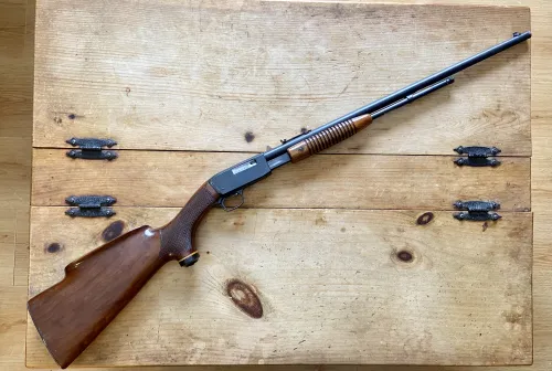 925.00 Browning Trombone .22 L made in Belgium - custom stock pump action rifle Mar 6, 2026 - 5:10 AM GunSlinger.44 Browning Trombone .22 L. 22” barrel. 14.25” LOP. Made in Belgium.