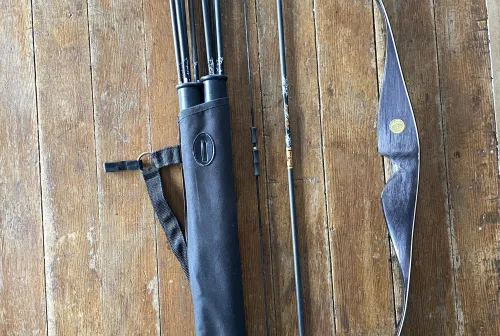 350.00 Bear Kodiac cub recurve Mar 25, 2026 - 5:14 PM Carrb Bear Kodiac cub youth recurve. 30lb draw. Comes with 12 gold tip target arrows, and scabbard.