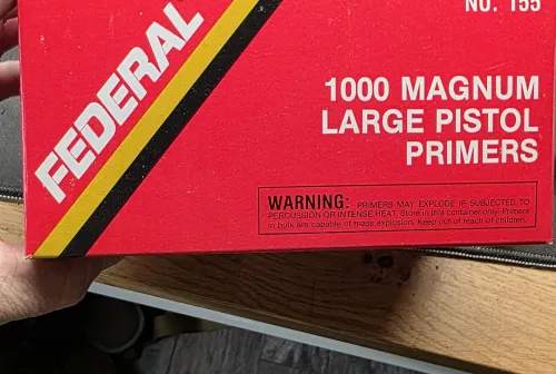 110.00 magnum pistol primers 1000 Feb 1, 2026 - 10:17 AM 6GT98 older but have been stored properly cool dry place.. no shipping...