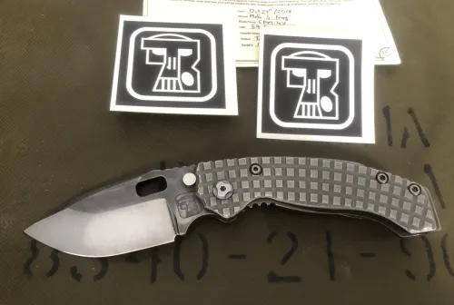 590.00 Custom Trouble Blade knife Feb 25, 2026 - 8:31 AM alexk Custom knife by Trouble Blades. Model is the Lil’Mofo from 2018.