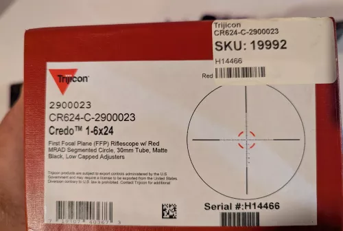 1250.00 Trijicon Credo 1-6x24 ffp Oct 9, 2025 - 2:13 PM Gerpwaller I have a trijicon credo 1-6x24 ffp for sale with the red segmented circle reticle.