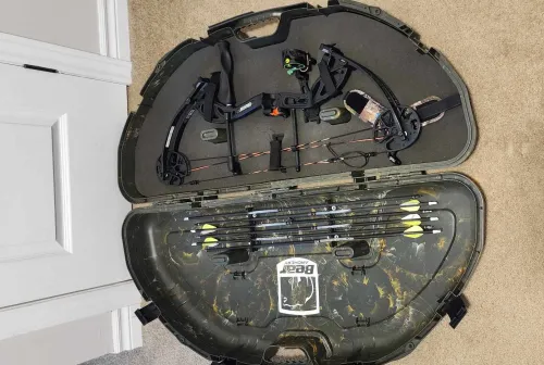 350.00 Bear Cruzer G2 Compound Bow package Dec 14, 2025 - 11:20 AM PJL This is a Bear Cruzer G2 Bow with quiver, wrist release, arrows with field tips, broad heads, Har