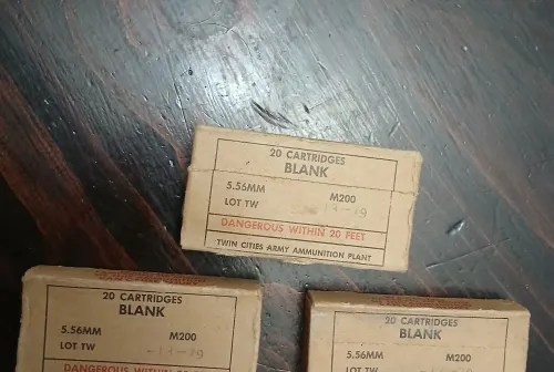 30.00 5.56 mm Blanks Dec 17, 2025 - 8:17 PM Motoman 5.56 mm Blanks Twin City Army Co. 3 Boxes. $30.00