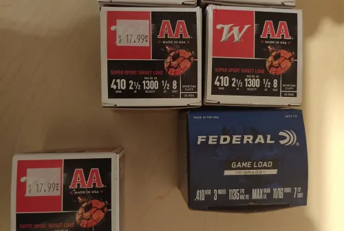 150.00 410 ammo for sale as a package Dec 17, 2025 - 3:47 PM Vladimir Sold the gun, have some ammo left. 5 full boxes and one about a half.