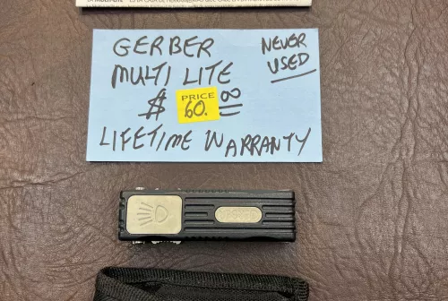 60.00 GERBER MULTI -LITE Oct 12, 2025 - 11:18 AM REMINGTON JIM GERBER - MULTI - LITE. knife multi tool with lite . Very Kool .