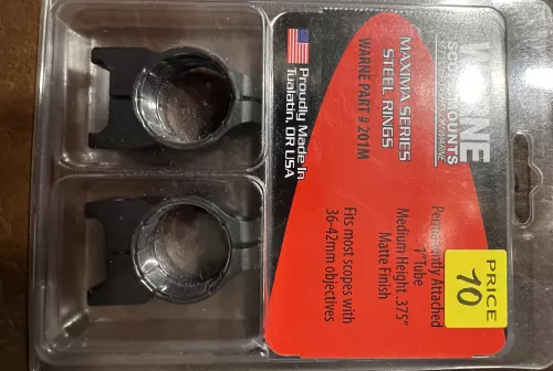 70.00 Warne 1” Scope rings Oct 12, 2025 - 11:33 AM REMINGTON JIM New in package Warne #201M Maxima 1 “ medium height sc