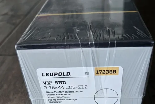 2100.00 Leupold VX-5HD 3-15x44mm, Firedot, #172368, sealed in factory plastic Feb 7, 2026 - 2:46 PM Duckin Leupold VX-5HD, 3-15x44mm, CDS-ZL2 wtih the superb illuminated Firedot duplex reticle.