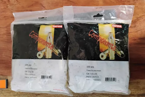 1.00 7.5x55 Norma brass Aug 21, 2025 - 10:13 AM allanchudy I have 2 sealed bags available. I'm asking $100 per bag, or $1 per brass.