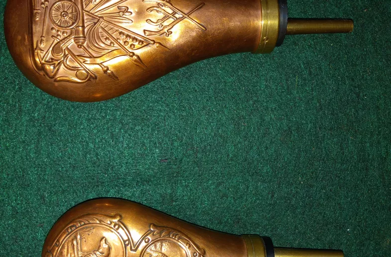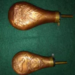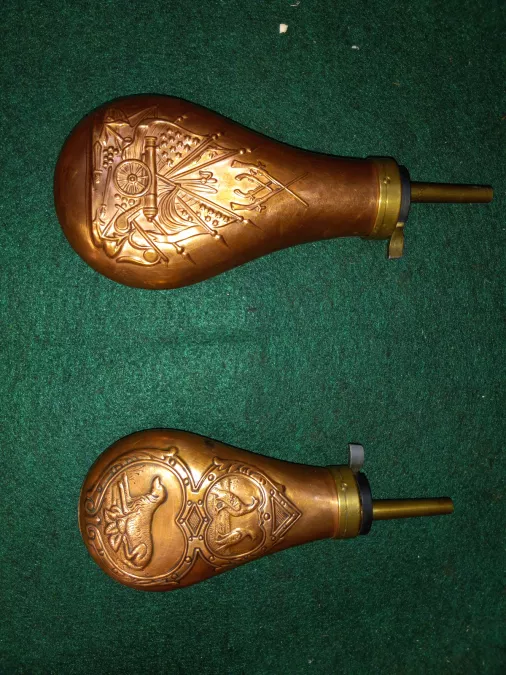 Hello selling two powder flasks . Both are in good working condition only thing wrong is 1 screw missing in the smaller one as pictured. 80 $ shipped .