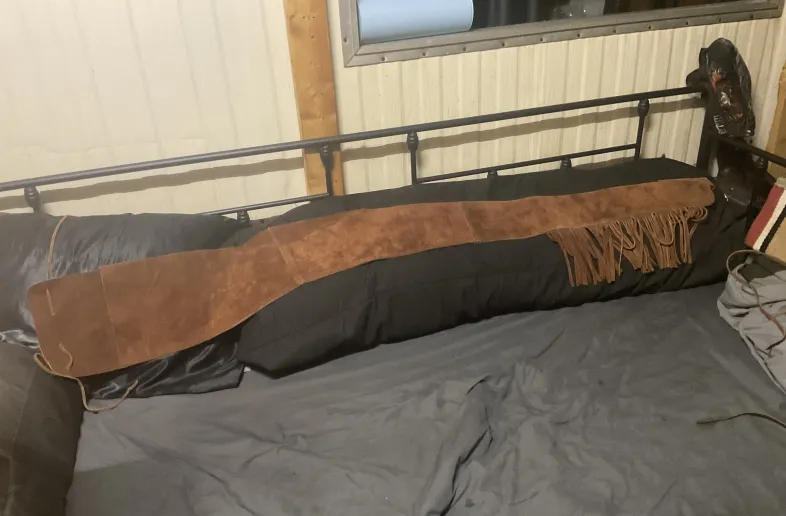 Leather rifle sleeve with fringe