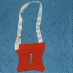 1 matching red lined possible bag --haversack ...........has a strap and buckle for closing and an adjustable shoulder strap BAG measures 10 inch across by 9 inch tall