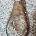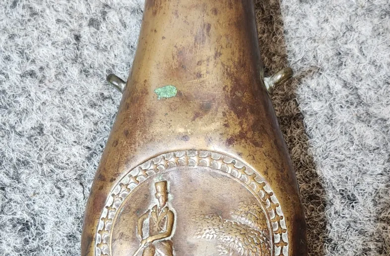 Powder Flask Copper / Brass with gentleman and dog scene