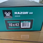 Let nothing escape your ever-watchful eye with the Vortex® Razor® UHD™ Binoculars. This ultra-high-definition optical system features APO-matched lenses, Abbe-Koenig prisms, XR™ Plus anti-reflecting lens coatings, phase correction, and dielectric prism coatings that deliver bright, high-resolution, colour-accurate images. The interior has been purged with argon gas to make these binoculars waterproof and fogproof. The exterior lenses feature ArmorTek®, an ultra-hard coating that stands up to abrasions and smudges. Use the center focus wheel to adjustable both barrels easily. These Vortex binoculars have twist-up eyecups that are comfortable even with eyeglasses. This premium pair of binoculars is built to last with its tough — yet lightweight — magnesium chassis and rubber armour. Includes a premium GlassPak™ Pro binocular harness complete with rangefinder pouch, comfort neck strap, lens covers, and lens cloth.