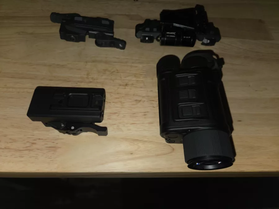 Included are 3 mounts, including the hard to find Wilcox "flip to side" with shoe for weapon mounting (cost was $1400. from Falconclaw in Europe).