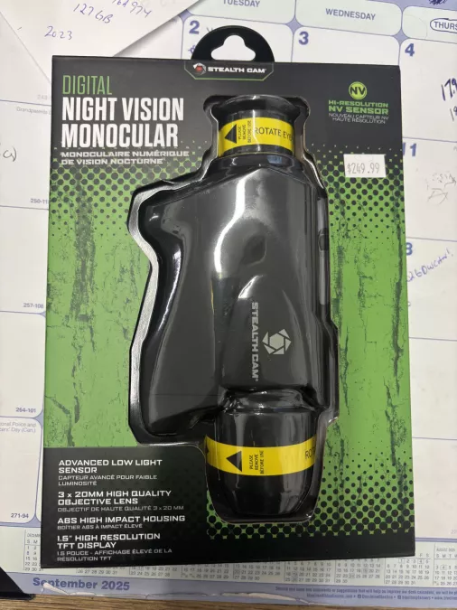 - A 3x20mm objective lens delivers a seven-degree field of view and digital zoom up to 9X to help you source out where sounds are originating from in the dark.
