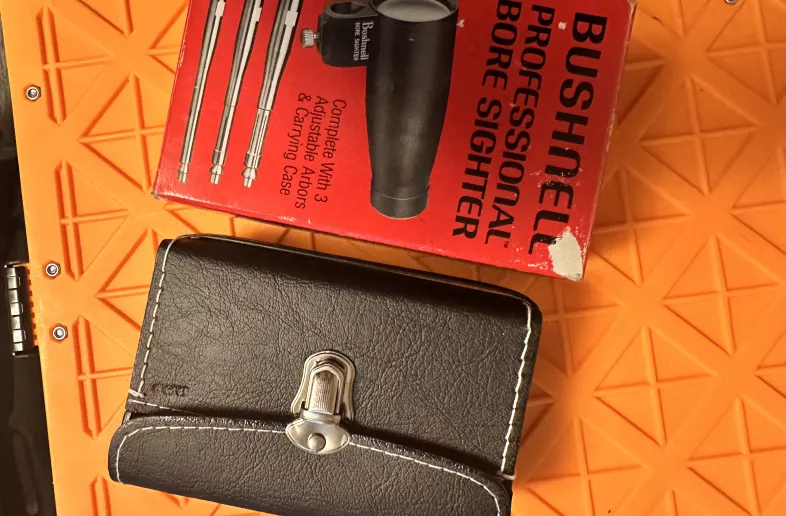 In like new condition.   Comes with 3 arbours to cover most common calibers. Also storage case and original box. Works great.