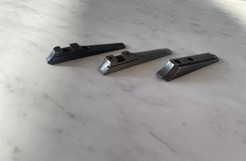 Selling off as a lot a set only, front and rear sight bases for Remington semi auto and pump centerfire rifle series rifles. Comes with 1 screw