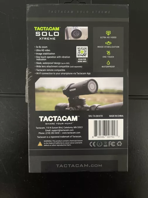 Manufacturer: Tactacam Color: Black Magnification: 3 - 8x Battery Type: Lithium Ion Resolution: 1080 pixels