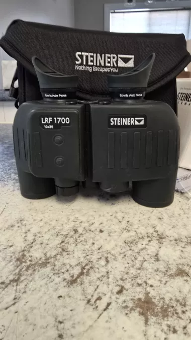 Steiner 10x30 laser range finder binoculars. The clearest glass I have looked through. They have the auto focus so when you set it for your eyes everything is in focu from 20m to infinity. 1700 m ranging capability. Used for one hunt. Getting out of long range shooting/hunting. Text is best 780 293 1974 $1500
