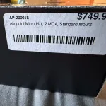Selling my Aimpoint H-1 2 moa red dot. Has been mounted but has never seen the range. Comes in original box with the Aimpoint tool as well as the rubber lens covers. Includes the low pic rail mount.
