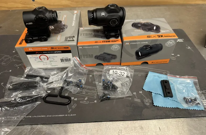 Selling as a package. SLx 1X ACSS Gemini 9mm illuminated reticle. Near perfect condition with box, risers and screw package. SLx 3x MicroMagnifier with box, risers, screw package. SLx flip to side mount with box and screw package. Ship at buyers expense with mandatory insurance .