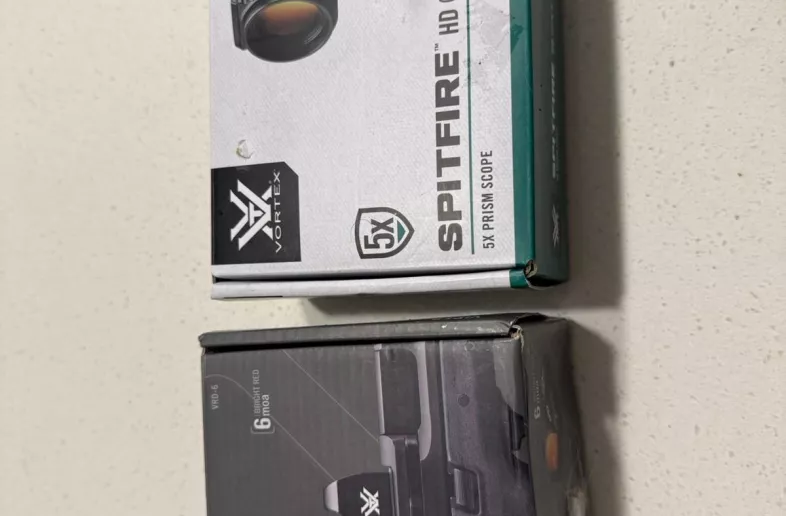 Vortex Viper Red Dot mounted on top of Vortex Spitfire 5x Prism Scope