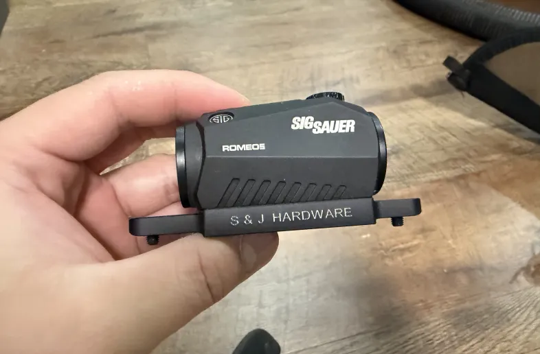 Sig sauer Romeo 5 mounted on S&j hardware t1/t2 mount for Mossberg 590